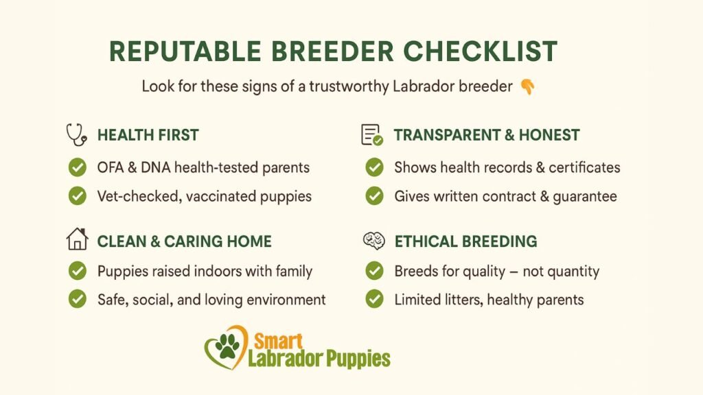 What are some red flags to watch out for when choosing a Labrador breeder?